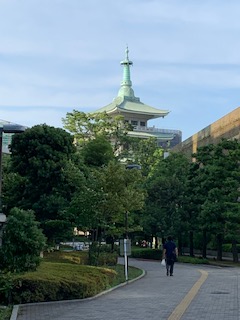 This is sort of the best I could do to emulate Dad’s photo, not having access to the hospital of course, and with the overpass encroaching on the view. In Dad’s photo you can just see Asakusa station in the distance. Here, it’s lost among all the new buildings. Along the way, found this pagoda-style structure which I think Dad also has a photo of: